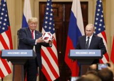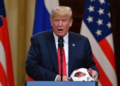 Tikšanās laikā Helsinkos Donalds Tramps no Putina saņēma dāvanu - oficiālo Pasaules kausa futbola bumbu.
