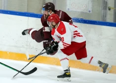 FOTO: Latvijas hokejisti pārbaudes spēlē zaudē Polijai