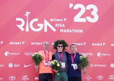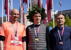 Rīgas maratona 42km un 21km distanču uzvarētāju apbalvošana. 2023