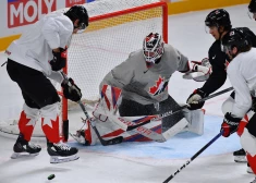 Kanādas hokeja izlase "Arēnā Rīga" gatavojas spēlei pret Latviju