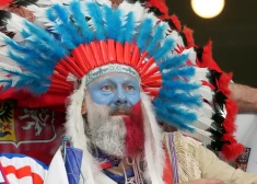 Latvijas hokeja fani pie "Arena Rīga" pirms spēles ar Kanādu.
