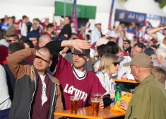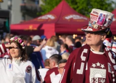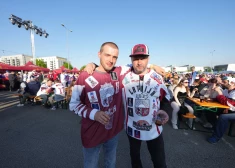 Latvijas hokeja fani pie arēnas gaida spēli pret Kanādu