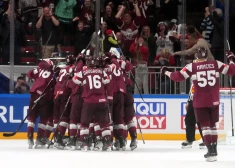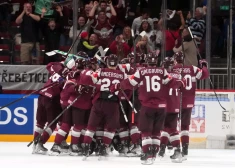 Latvijas hokejisti un fani priecājas par uzvaru pār Čehiju