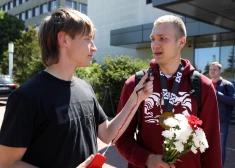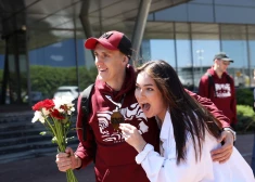 Latvijas basketbolistus lidostā sagaidīja Latvijas Basketbola savienības (LBS) prezidents Raimonds Vējonis, kā arī tuvākie draugi, ģimenes locekļi un mediju pārstāvji.
