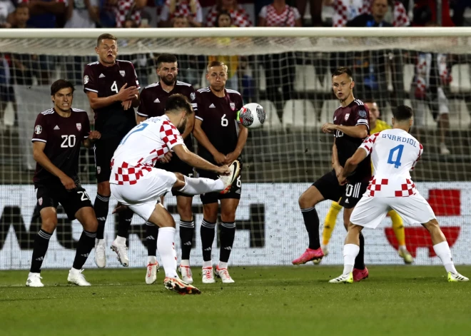 Latvijas futbolisti pēc pirmā puslaika graujoši zaudē Horvātijai