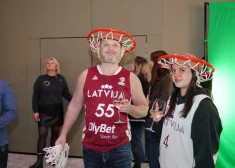 FOTO: "#6spēlētājs" atklāšanas burziņa modes skatē cilvēkus priecē raiba kompānija - Danilāns, Biedriņš un Aminata