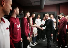VIDEO: “Paldies, liels!” Valsts prezidents ģērbtuvē sveic pasaules karstāko basketbola komandu, kas viņam radījusi pat veselības problēmas