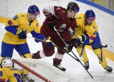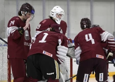 Latvijas hokeja klubu izlase, kura pārsvarā ir veidota no gados jauniem spēlētājiem, tiekas pirmajā no divām pārbaudes spēlēm Rīgā pret ...