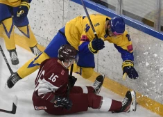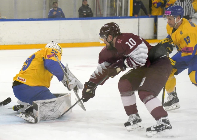 Ar triju Bukartu palīdzību Latvijas hokeja klubu izlase pārbaudes spēles pagarinājumā pieveic Ukrainu