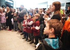 Fani satiek Latvijas hokeja izlasi Akropolē 08.05.24.