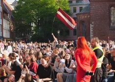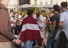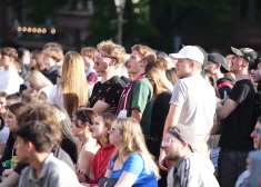 Latvijas hokeja izlases spēli pasaules čempionātā pret Vācijas izlasi Doma laukumā vēroja plašs fanu loks.