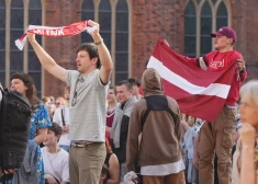 Hokeja fani Doma laukumā vēro sagrāvi pret Vāciju