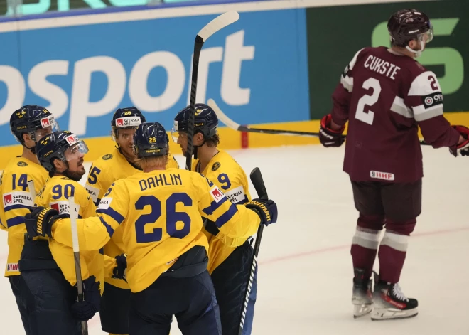 Latvijas hokeja izlase pasaules čempionātā pārliecinoši zaudē Zviedrijai. 18.05.2024