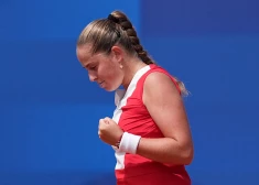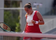 Latvijas labākā tenisiste Aļona Ostapenko Parīzes olimpisko spēļu pirmās kārtas spēlē spēkojas ar kolumbieti Kamilu Osorio.