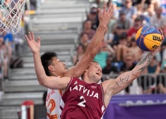 Latvijas 3x3 basketbolisti Parīzē pārliecinoši apspēlē Ķīnu