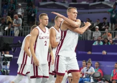 Latvijas 3x3 basketbolisti Nauris Miezis, Kārlis Lasmanis, Francis Lācis un Zigmārs Raimo pirmdien cieta zaudējumu Parīzes olimpisko spēļu sacensību pusfinālā ...