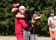 FOTO, VIDEO: ar skūpstiem un ziediem mājās tiek sagaidīti Latvijas olimpieši