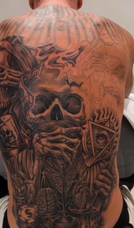 Jaunie tetovējumi tika pabeigti tieši tajā laikā, kad tika oficiāli šķirta Timmas laulība ar Annu Sedokovu. Kā redzams, muguru klāj vairākas miroņgalvas, svari, kuri sver sirdi un smadzenes, metamais kauliņš, naudas zīmes, glāze, kurā tiek liets kāds dzēriens un citi šāda tipa simboli.