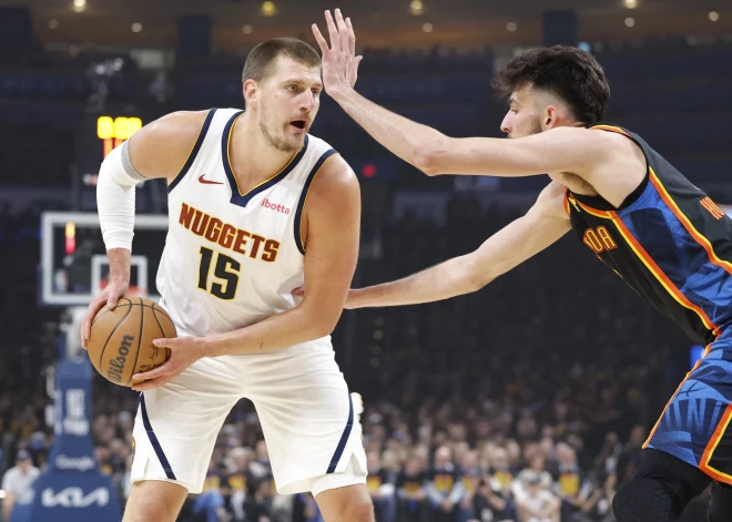 Jokiča grandiozais sniegums sekmē "Nuggets" atspēlēšanos un uzvaru pirmajā spēlē pret "Thunder"