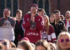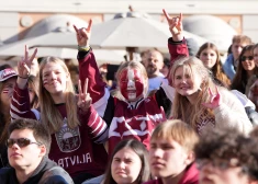 Tūkstoši Doma laukumā noskatās Latvijas hokejistu uzvaru pār Poliju