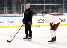 Latvijas hokeja izlase Stokholmā pa taisno no lidostas devās uz vairāk nekā stundu garu treniņu "Hovet" arēnā.