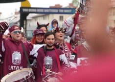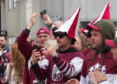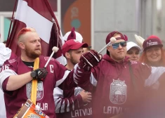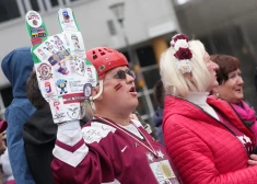 Latvijas hokeja fani Stokholmā pirms spēles ar Somiju
