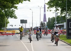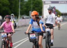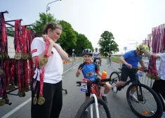 Lielie un mazie sēžas uz velosipēdiem "Toyota" Rīgas velomaratonā; 01.06.2025.
