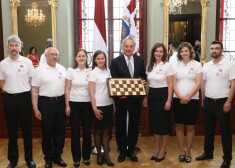 Prezidents Bērziņš Latvijas šahistiem vēl veiksmi olimpiādē. FOTO