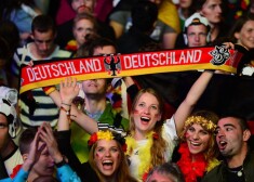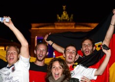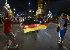 Vācijas futbola izlases fani visā pasaulē līksmo par uzvaru Pasaules kausa finālspēlē