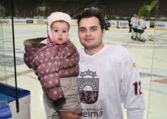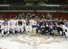 Skat, kā politiķi hokeja draudzības spēlē sacentās ar policistiem. FOTO. VIDEO