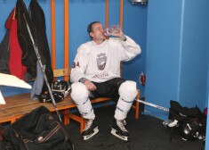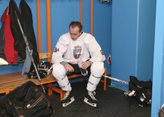 Tā Saeimas policijas hokeja mača otrajā trešdaļā izskatījās Saeimas komandas ģērbtuvēs