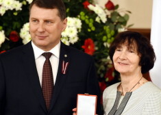 Elīnai Garančai pasniedz Triju Zvaigžņu ordeni. Apbalvojumus saņem vēl 57 personas. FOTO