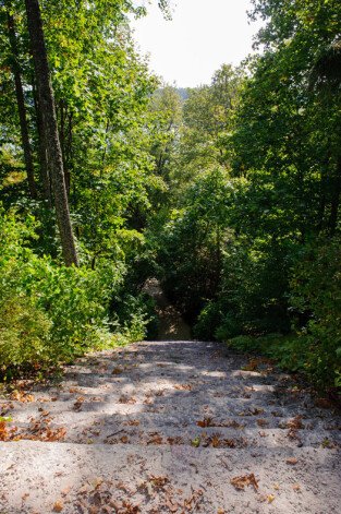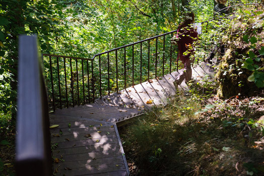 Stāvi pakāpieni mūs noved līdz kraujā paslēptai slepenai ejai, kura, kā vēsta leģenda, ved zem Daugavas. Runā, ka revolūcijas laikā Siversa pilī slēpušies vietējie muižkungi, kas pa eju gribējuši bēgt uz Daugavas otru krastu. Iespīdinām alā mobilos telefonus – tā ir desmit metru dziļa, drošības nolūkos aizbērta. Melnā priede patiešām ir melna. Skujas garas, taisnas un cietas. Savvaļā tā aug Viduseiropas un Dienvideiropas kalnos. Turpat ir irbenes ar lielām, sarkani oranžām ogām, ko es plūcu un ēdu. Garšo līdzīgi pīlādzim, tikai sulīgākas un ne tik rūgtas. Zigrīda stāsta, ka irbene ir ļoti vērtīga imunitātes stiprināšanai, pret saaukstēšanos palīdzot labāk nekā pelašķis. Lai pazustu rūgtums, ogas jāieliek saldētavā. “Te var nākt un lasīt, tas nav liegts,” saka Zigrīda.
