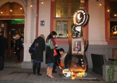 Cilvēki klusām nāk un iet. Vieni iededz svecīti uz ielas, bet citi ienāk pasēdēt arī kafejnīcā, kur jau labu laiku vietu radusi Brīzes kartona figūra, pasūta kādu dzērienu un notrauš asaras, skatoties fotogrāfijās. Brīzes pieminēšanas vietā ieradusies viņa dzīvesbiedres, rakstnieces Elitas Veidemanes meita Linda, kamēr pati Elita joprojām atrodas Polijā, kur kārto formalitātes mūziķa mirstīgo atlieku pārvešanai uz dzimteni. Tas plānots šonakt.