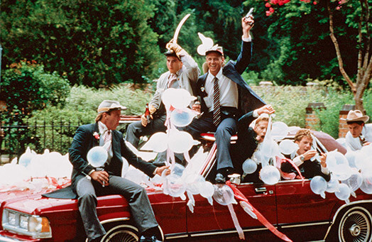 Amerikā neķītro briežu ballīšu bums sākās pēc 1984. gada Holivudas filmas Vecpuišu ballīte ar Tomu Henksu līgavaiņa lomā un līdzīgām seksa komēdijām, kas kalpoja par labu paraugu. Interesanti, ka Vecpuišu ballīte veidota, par pamatu ņemot reālu vecpuišu plītēšanu, kuras dalībnieki bijuši vairāki filmas autori. Iecere uzņemt šādu filmu esot dzimusi jau trakās ballītes laikā.