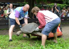 Raimonds Bergmanis jau 13. reizi izies zoodārza bruņrupuču aplokā, lai noskaidrotu, par cik tad šajā gadā pieņēmušās (vai nokritušās...) svarā abas Galapagu bruņrupucienes Trīne un Čelsija. Šogad viņam palīgos būs 2013. gada stiprākais cilvēks Latvijā, „Kokneša kausa” un daudzu citu spēkavīru trofeju ieguvējs Didzis Zariņš.