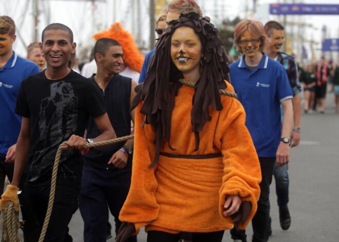 "The Tall Ships Races 2013" dalībnieki iznāk liksmā gājienā Rīgas ielās