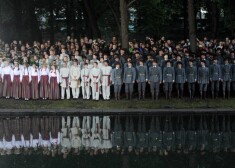 Ar krāšņu ceremoniju Dziesmu svētku parkā svinīgi atklāj Dziesmu un deju svētkus. FOTO