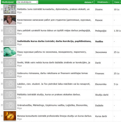 Pat par dažiem desmitiem latiem var nopirkt jau izstrādātu un gatavu kursa darbu, lai to varētu aizstāvēt augstskolā. Savukārt bakalauru darbu students var nopirkt par pāris simtiem latu. Pie tam darbs var būt uzrakstīts visnotaļ profesionāli, lai par to augstskolā nopelnītu astoņnieku.