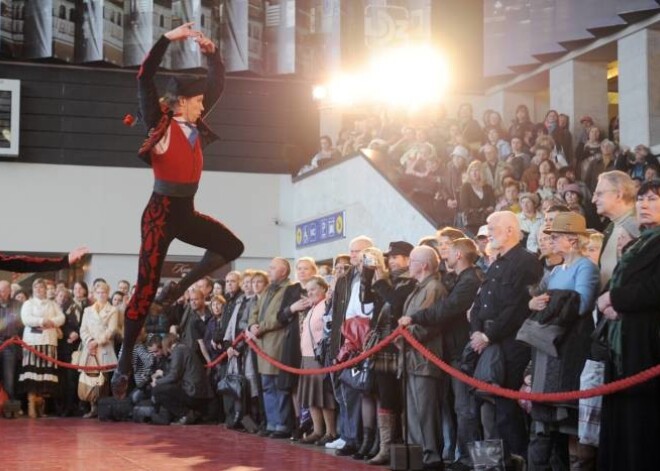 Baltijas baleta festivāla atklāšana pulcē pilnu Rīgas dzelzceļa staciju. FOTO