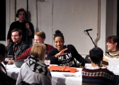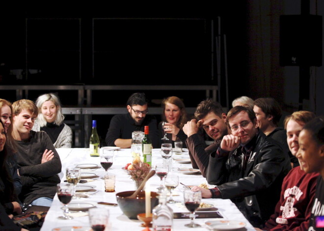 Dejas un svinīga pasēdēšana pie galda; Ģertrūdes ielas teātrī nosvinēta "Taņas dzimšanas diena". FOTO