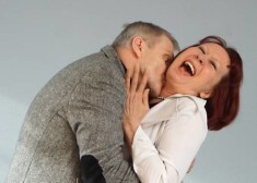 Akvelīna Līvmane un Juris Kalniņš izrādē "Kāpēc mums jāprecas"