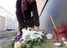 Kasjauns.lv novēroja, ka pie ēkas Rīgā, kur dzīvojis Dzejnieks, deg desmitiem svecīšu un cilvēki tur svecītes nolikt dodas nepārtraukti.