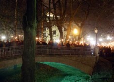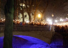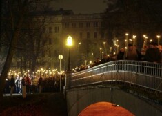 Lāpu gājienā Rīgas centrā piedalījās desmit tūkstoši iedzīvotāju. FOTO
