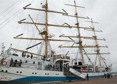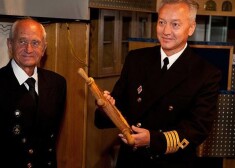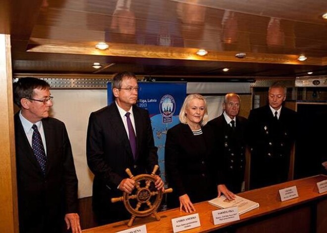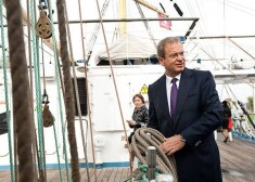 Viņš šodien arī sveica daudzkārtējā "The Tall Ship Races " uzvarētāja burinieka „Mir” kapteiņus ar ierašanos Rīgā, dāvinot simbolisku kuģa stūres ratu.