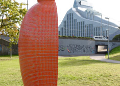 Otrā daļa no Latvijas Mākslas akadēmijas profesora Ojāra Pētersona lielformāta objekta "Lielā vāze" pie Latvijas Nacionālās bibliotēkas.
