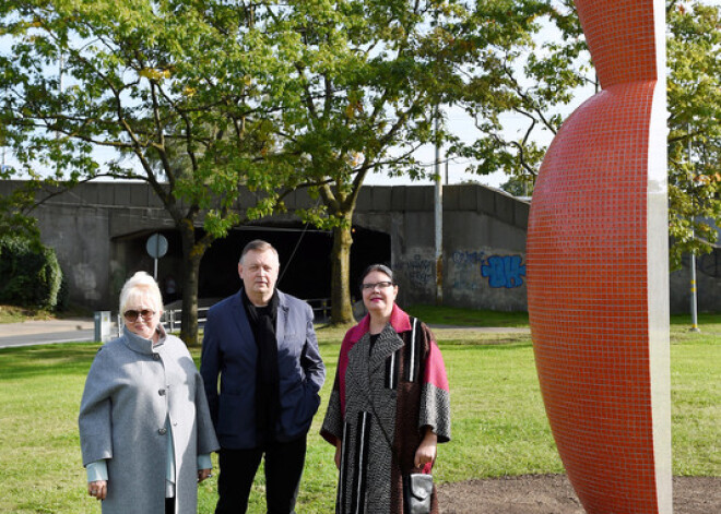 Atklāj trīsdaļīgu lielformāta mākslas objektu "Lielā vāze"