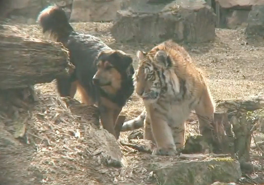 Rīgas zoodārza tīģerēns Klifs jau ir pāraudzis savu spēļu biedru, suni Pradu. Un nu jau viņu svara kategorijas ir tik atšķirīgas, ka apmeklētāji uztraucas par suņa dzīvību...
