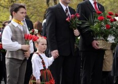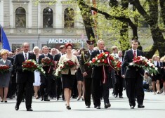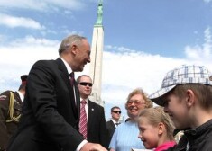 Pēc valsts amatpersonu oficiālās ziedu nolikšanas ceremonijas pie Brīvības pieminekļa iedzīvotāji Valsts prezidentam Andrim Bērziņam vēlēja palikt amatā nevis tikai vienu termiņu, bet visus iespējamos astoņus gadus.