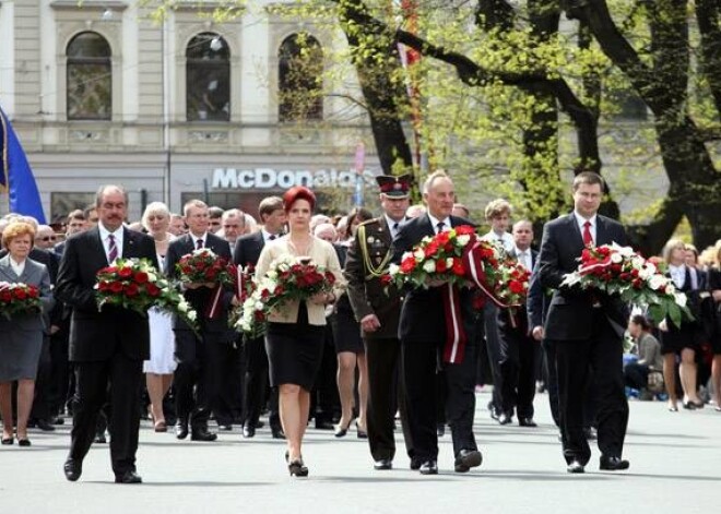 Šodien par godu Latvijas Neatkarības atjaunošanas 22.gadadienai ziedus pie Brīvības pieminekļa nolika arī Saeimas priekšsēdētāja Solvita Āboltiņa (V), Ministru prezidents Valdis Dombrovskis (V), Augstākās tiesas priekšsēdētājs Ivars Bičkovičs, Saeimas deputāti, bijušie Augstākās padomes deputāti, Rīgas mērs Nils Ušakovs (SC), eksprezidenti Vaira Vīķe-Freiberga un Valdis Zatlers, ārvalstu diplomāti un citas personas.